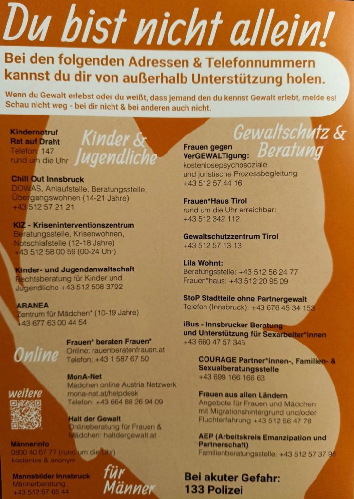 Die jüngst bekannt gewordenen Femizide, wie etwa der Mord an einer Grazer Influencerin, der ausgerechnet während dieser Kampagne stattfand, oder der – bereits im Juni 2024 begangene – Doppelmord an einer Syrerin und ihrer Tochter, untersteichen die Dringlichkeit des Anliegens, auf Gewalt gegen Frauen* aufmerksam zu machen.