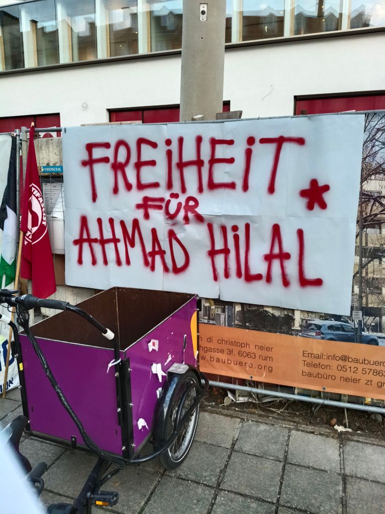 Auch in Innsbruck fand am 19. Dezember eine Gedenkkundgebung statt, zu die von der Tiroler Plattform für Politische Gefangene, bzw. von der Antirepressionsgruppe Innsbruck, organisiert wurde und zu der unter anderem die ATIK und die ADHK aufgerufen hatten. Drei Redner:innen machten in deutsch und türkisch auf die Repression des türkischen Staates, die unwürdigen Haftbedingungen und auf die Mittäterschaft von Österreich und EU aufmerksam. Ein vierter Redner spannte anschließend den Bogen hin zu den Repressionsmaßnahmen in Österreich, von denen aktuell insbesondere die Palästinasolidarität betroffen ist. Dabei wird auf den Aktivisten Ahmed Hilal aufmerksam gemacht, der auf einer Kundgebung am 29.11.2025 festgenommen wurde und seitdem in Haft sitzt. Sein Vergehen: Er hat die Losung „From the river to the sea, Palestine will be free“ gerufen. Die Kundgebung schloss mit einer Solidaritätsadresse an Ahmed Hilal mit einem Foto bei dem ein Transparent, das die Freilassung Ahmed Hilal fordert, gemeinsam hochgehalten wurde mit einem Transparent, das die Schließung der türkischen Foltergefängnisse fordert. Damit wurde zum Ausdruck gebracht, dass beide Forderungen zusammengehören, auch wenn die Kontexte jeweils verschieden sind. Die Klammer ist der Kampf um menschenwürdige Verhältnisse und die Freilassung von politischen Gefangenen, in der Türkei, in Österreich und überall.