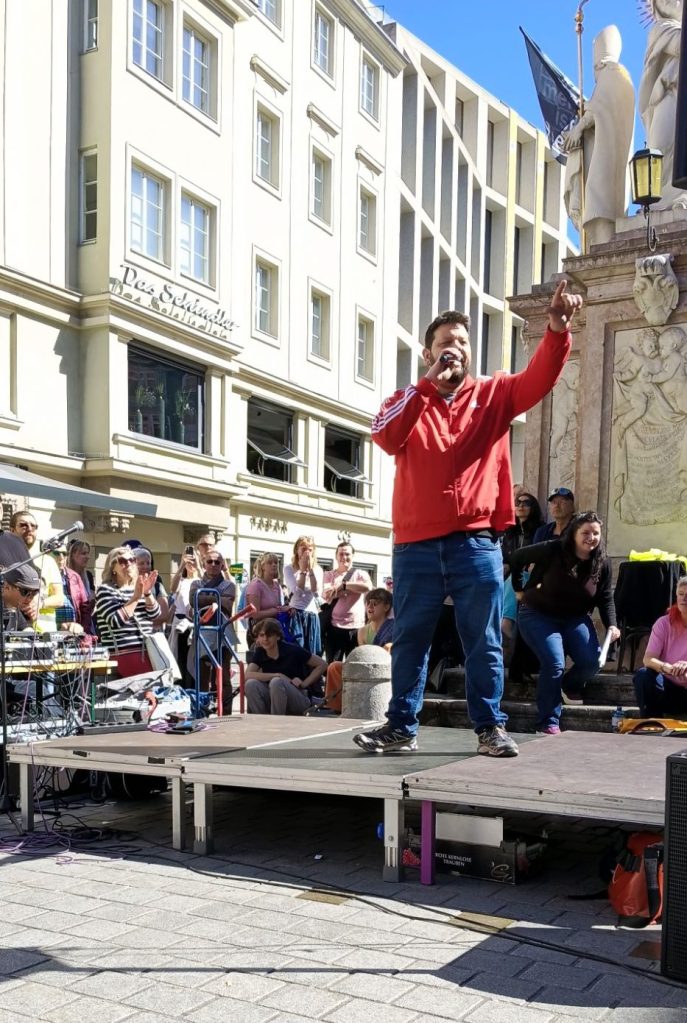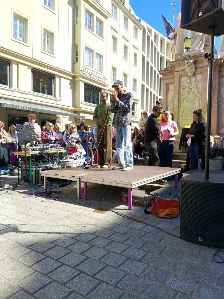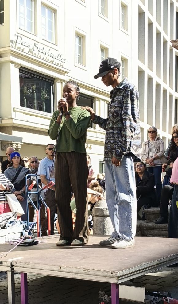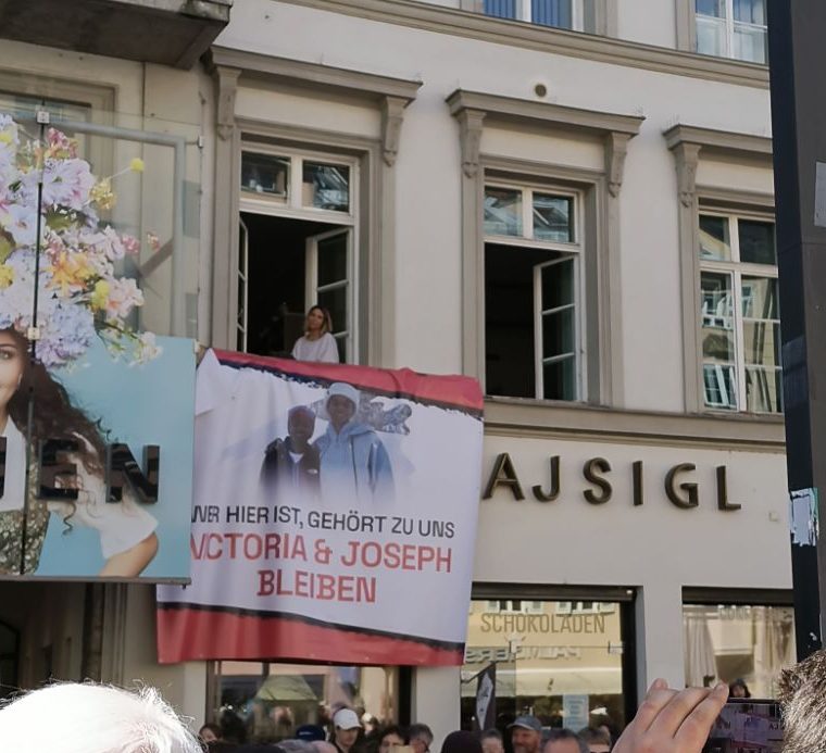 Zurück zur Kundgebung: Den krönenden Abschluss machten Joseph und Victoria, als die die Bühne bei der Annasäule betraten. Sie waren sichtlich bewegt von der Anteilnahme und der Solidarität der Anwesenden. Victoria, die mit den Tränen kämpfte, machte deutlich, dass sie üblicherweise kein „Crybaby“ sei. Allerdings war sie damit nicht allein. Viele der Teilnehmer:innen kämpften mehr als einmal mit den Tränen. Tränen der Trauer und des Zorns. Gleichzeitig war die Stimmung auf der Kundgebung geprägt von einer solidarischen Anteilnahme. Und von einer Entschlossenheit. Einer Entschlossenheit, diese Abschiebung nicht hinzunehmen.