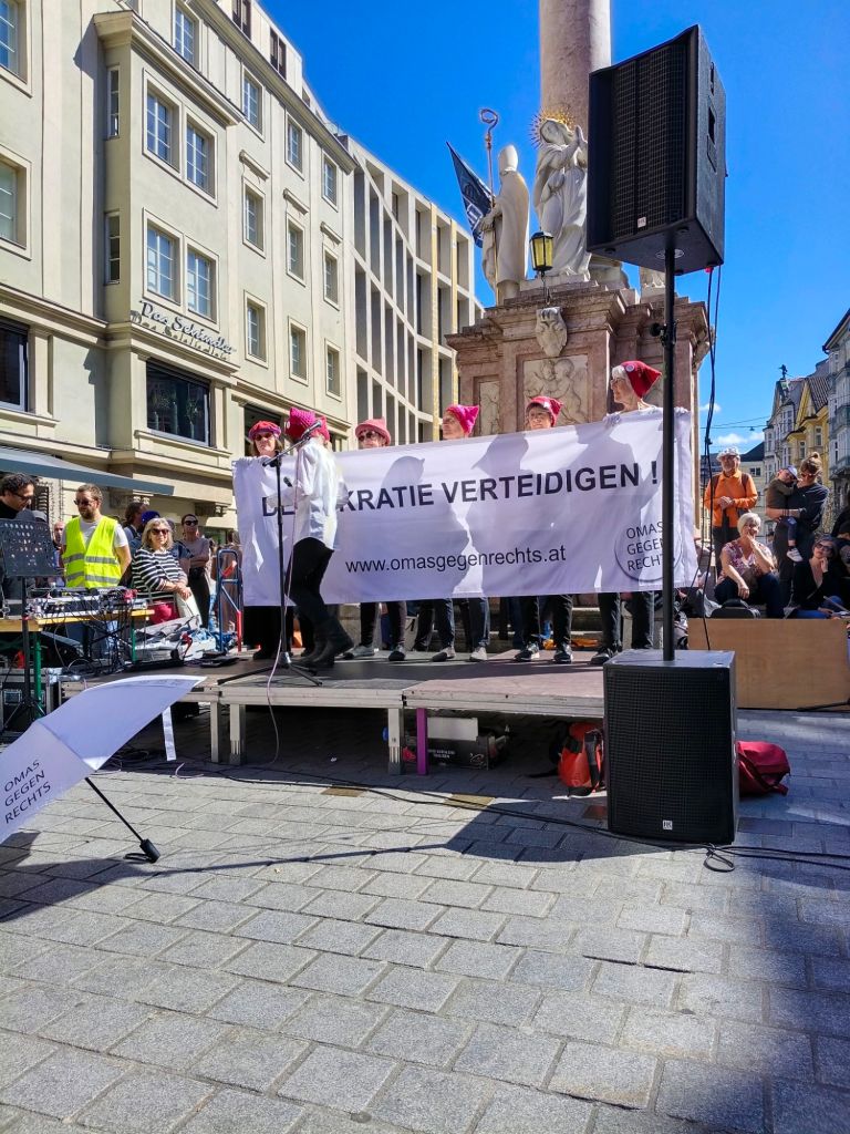 Die Fotos stammen von der besagten Kundgebung am 11.4. 2026 bei der Annasäule.